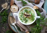 Spargelcremesuppe mit gebratenen Shiitake-Pilzen und Dill