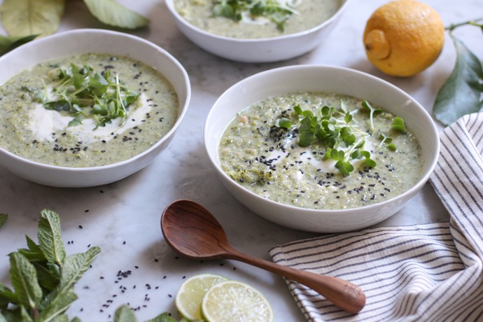 Frische Minze in Kombination mit Zitronensaft macht diese Suppe besonders aromatisch und lecker! Wenn Ihr Minze nicht mögt oder nicht zuhause habt, könnt Ihr stattdessen eine Handvoll frische Petersilie benutzen.