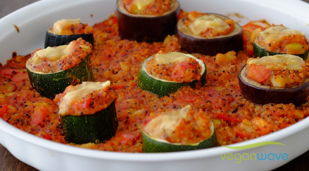 Gefüllte Zucchini und Aubergine mit Quinoa – clean eating ca. 25 min garen, den Backofen ausschalten und weitere 5 min weitergaren.