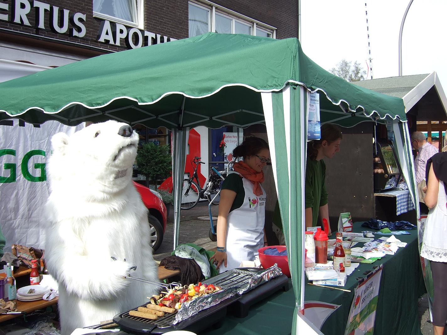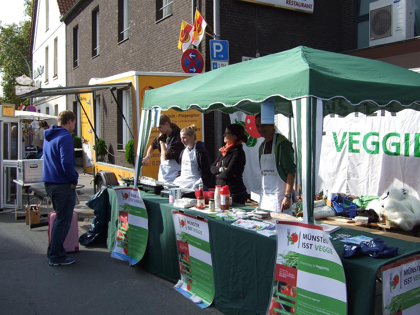 Wie immer gab es jede Menge interessante Gespräche, Gemüsespieße und Veggiewürstchen wurden verspeist und das Infomaterial wurde uns praktisch aus den Händen gerissen. Im Übrigen mussten wir aber auch feststellen, dass Handorf von der fleischfreien Idee noch nicht so überzeugt ist. Das bedeutet: Nächstes Jahr kommen wir wieder – wir bleiben hartnäckig!