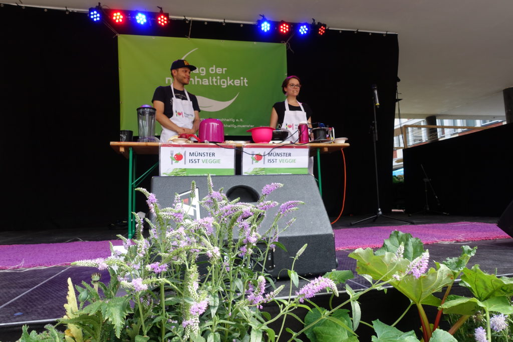 Bei bestem Wetter haben wir auch dieses Jahr wieder am Tag der Nachhaltigkeit teilgenommen. Der „Markt der Möglichkeiten“ mit vielen interessanten Infostände und einem tollen Bühnenprogramm mit Musik, Infos und unserer Kochshow fand in diesem Jahr auf dem Rathausinnenhof statt. Dementsprechend konnten wir uns über mangelnden Besucherandrang nicht beklagen. Ihr habt uns ganz schön beschäftigt gehalten. 🙂
