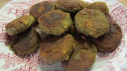 Eine Test-Bulette abraten – ist der Teig zu flüssig, einfach noch Paniermehl zufügen, ist er zu fest, ein wenig von dem Wasser dazugeben. Aus dem Teig flache Bratlinge formen und in Öl von beiden Seiten langsam braun braten.