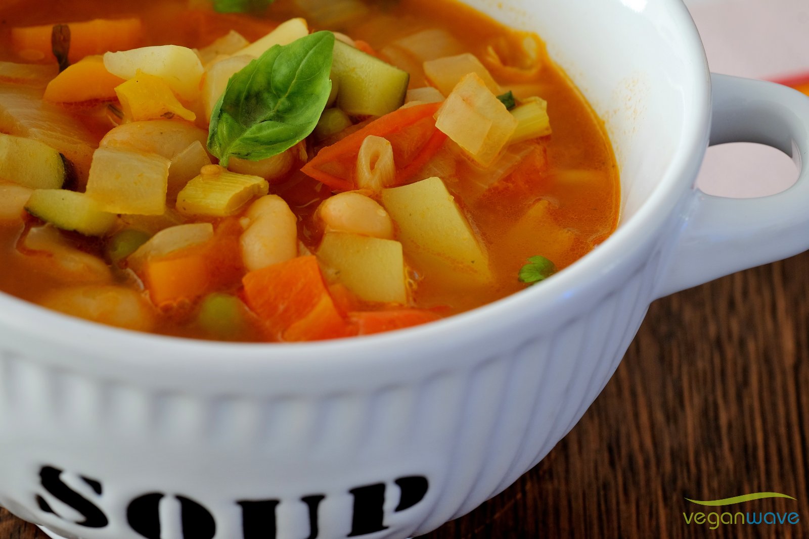 Fertig ist der italienische Eintopf – genießt die vegane Minestrone mit frischem Ciabatta, in Olivenöl kross gebratenem Baguette oder Fladenbrot.