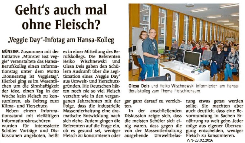 Wir bieten Vorträge über den Zusammenhang von Klimaschutz, Umweltschutz, Menschenrechten und Gesundheit mit unserer Ernährung an. Unsere Vorträge sind besonders für Schulen geeignet, wir waren aber auch bereits in Institutionen wie der Fachhochschule und im Anna-Krückmann-Haus aktiv.
