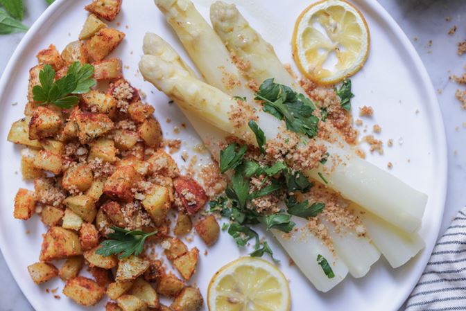 - 2-3 EL Semmelbrösel (für die Kartoffel) + 60 g Semmelbrösel für den Spargel